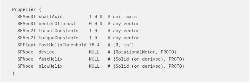 - device: this field has to be set with a RotationalMotorin order to control the propeller.