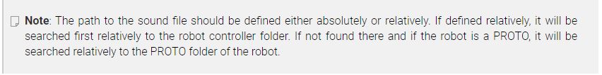 wb_speaker_speak函數允許用戶在揚聲器上執行文本到語音轉換。 Webots使用wb_speaker_set_engine函數指定的引擎和wb_speaker_set_language函數指定的語言將text參數的值轉換為聲音。產生的聲音通過指定的揚聲器播放。指定的文本可以是包含標點符號(例如“ Hello world!”)的純文本,也可以添加特殊效果以使其更加真實。這些效果是通過符合SSML(語音合成標記語言)標準的XML標籤指定的。這是pico和Microsoft引擎都支持的SSML標籤的列表。 Microsoft引擎可能支持其他標籤和參數。請參考有關它的Microsoft Speech API(SAPI)文檔。