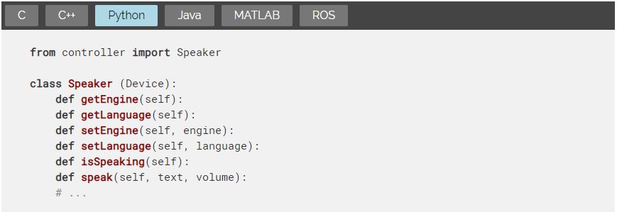 The wb_speaker_get_language function allows the user to get the language of the text-to-speech for a speaker device.