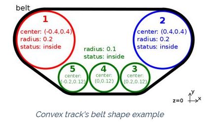 The following code fragment shows the belt path definition for the convex track example shown in this figure: